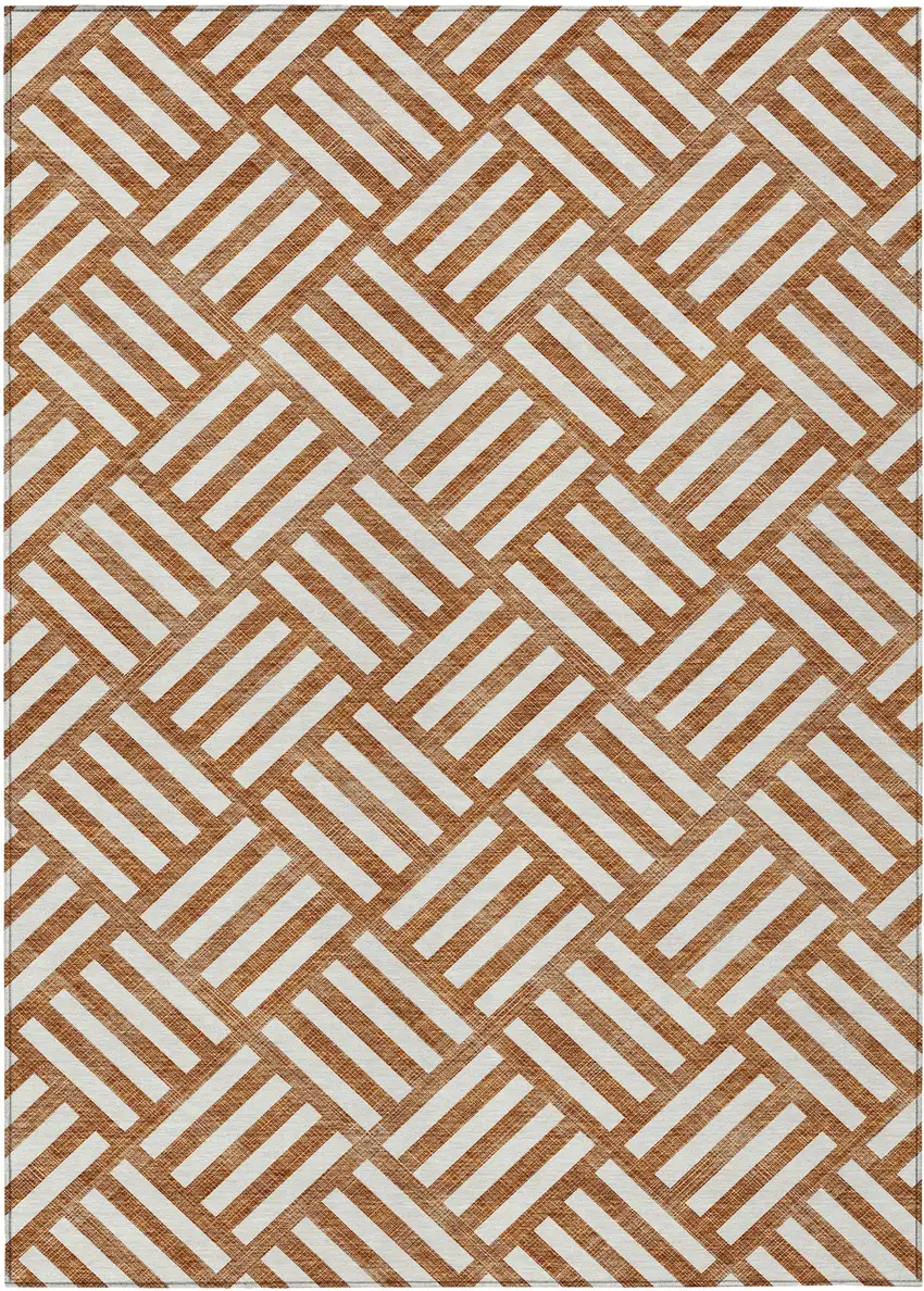 Orange And Ivory Geometric Washable Indoor Outdoor Area Rug