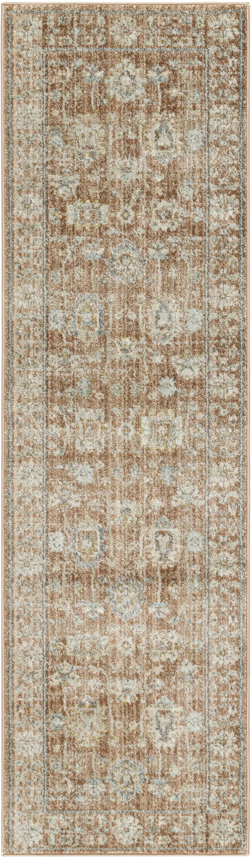 Orange and Ivory Oriental Power Loom Distressed Runner Rug With Fringe