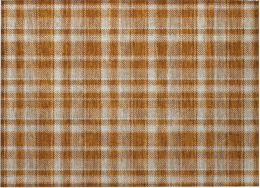 Orange and Ivory Plaid Washable Non Skid Indoor Outdoor Area Rug