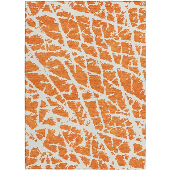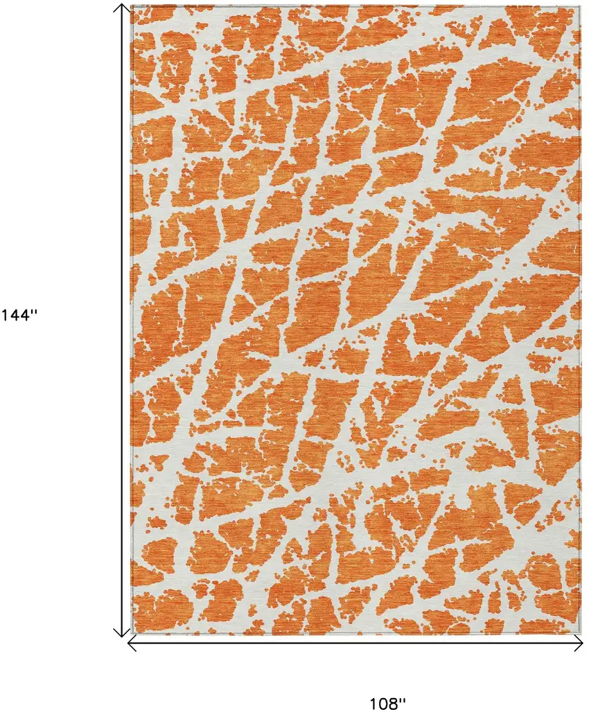 Set an inviting tone in your space with this 9-foot x 12-foot orange and white abstract washable stain resistant non skid indoor outdoor area rug. This rectangle shaped rug features a abstract design in orange and white to give it visual interest. A classic shape marries with good looking design for your space ideal for spaces with kids and pets, this rug is stain resistant to help repel stains and spilled liquids. Area rugs help to give warmth and sense of home to your space. 108-inch H x 144-inch W x 0.19-inch D