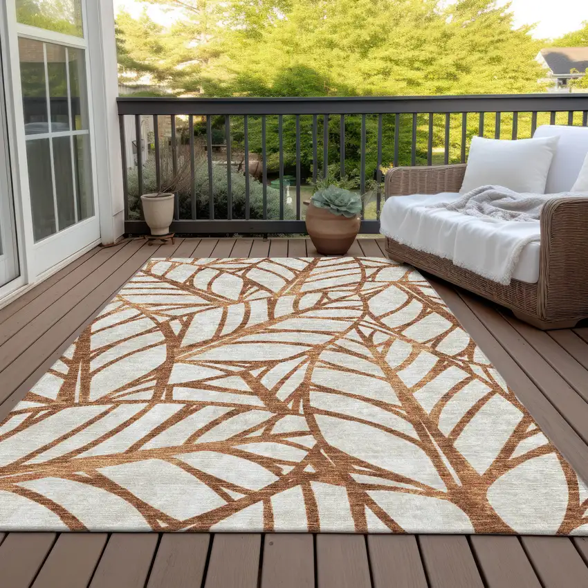 Add some artistry to your room with this 10-foot x 14-foot orange beige and copper floral washable indoor outdoor area rug. This rectangle shaped rug features a floral design that will work well both indoors or out. A classic shape marries with good looking design for your living room, hall, bedroom, porch, patio, or poolside. Ideal for outdoor spaces or high traffic areas with kids and pets, this rug is made from heavy duty polyester that is stain resistant to help repel water, dirt, and stains. Makes a great way to dress up your patio, porch, or poolside, but also works well as a durable and easy to maintain option in the kitchen, family room, or mudroom. 120-inch h x 168-inch w x 0.19-inch d.