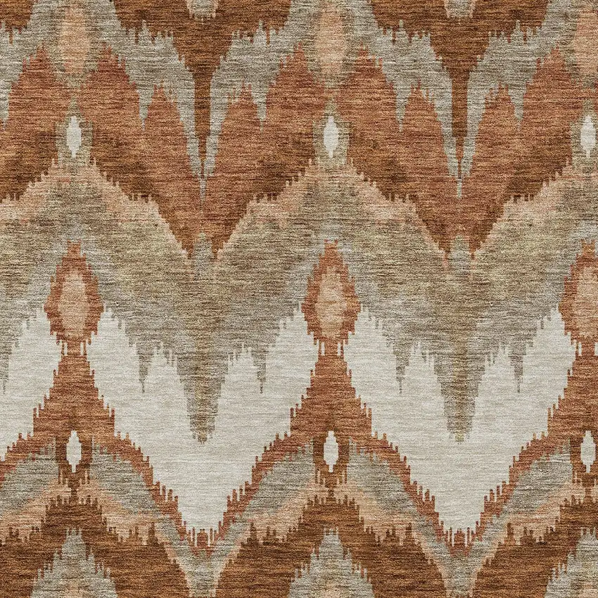 Add some artistry to your room with this 8-foot x 10-foot orange beige and copper ikat washable indoor outdoor area rug. This rectangle shaped rug features a ikat design that will work well both indoors or out. A classic shape marries with good looking design for your living room, hall, bedroom, porch, patio, or poolside. Ideal for outdoor spaces or high traffic areas with kids and pets, this rug is made from heavy duty polyester that is stain resistant to help repel water, dirt, and stains. Makes a great way to dress up your patio, porch, or poolside, but also works well as a durable and easy to maintain option in the kitchen, family room, or mudroom. 96-inch h x 120-inch w x 0.19-inch d.