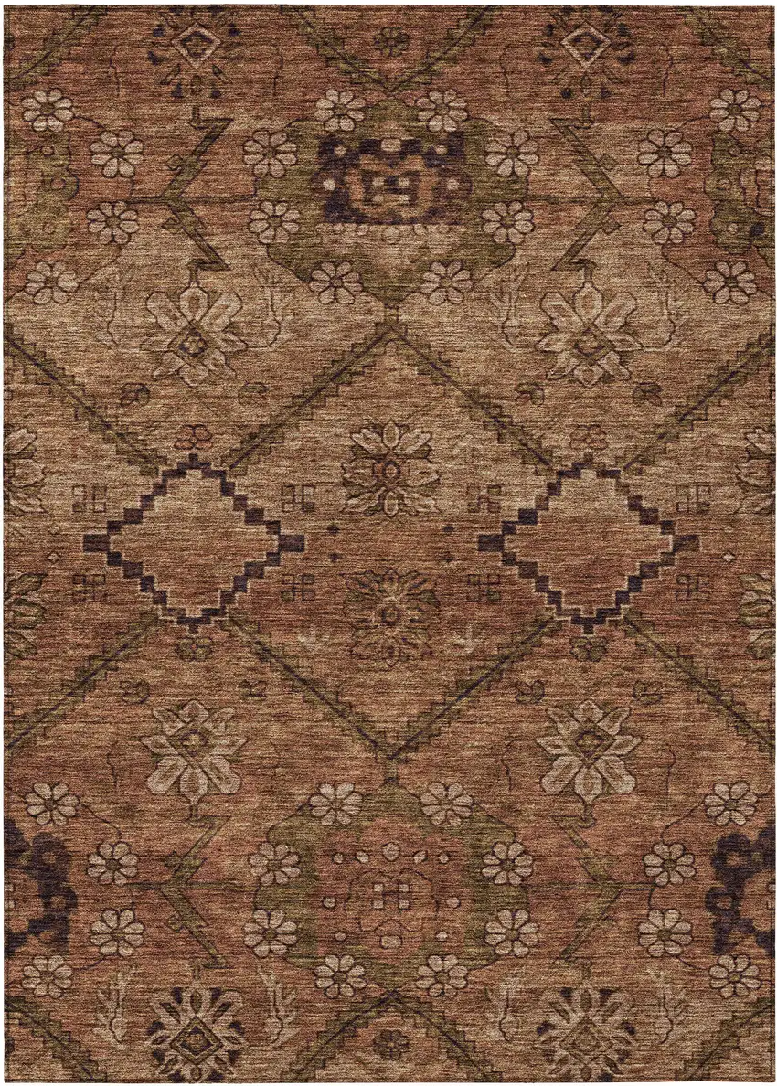 Orange Copper And Brown Floral Washable Indoor Outdoor Area Rug