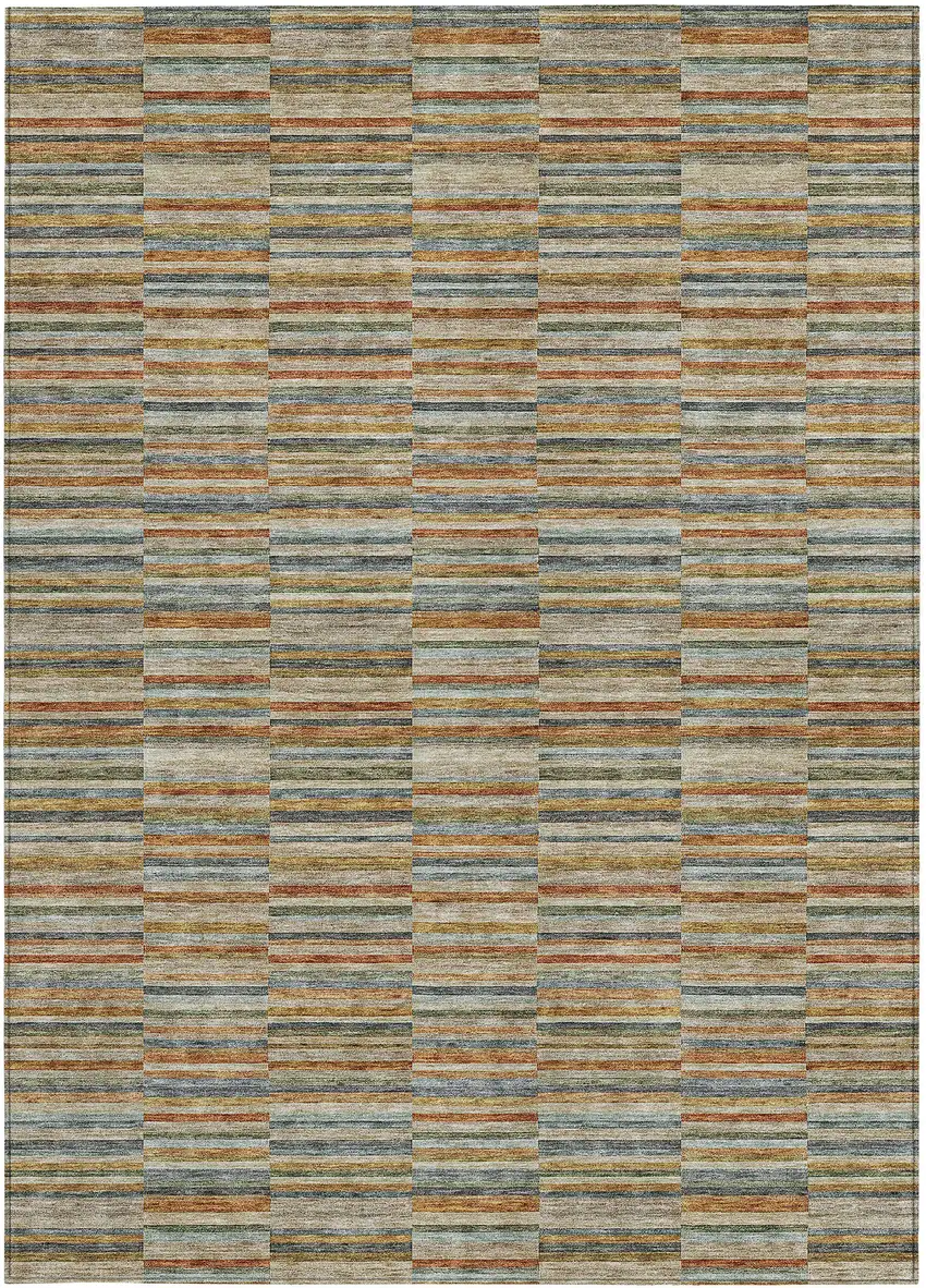 Set an inviting tone in your space with this 8-foot x 10-foot orange copper and gray striped washable indoor outdoor area rug. This rectangle shaped rug features a striped design that will work well both indoors or out. A classic shape marries with good looking design for your living room, hall, bedroom, porch, patio, or poolside. Ideal for outdoor spaces or high traffic areas with kids and pets, this rug is made from heavy duty polyester that is stain resistant to help repel water, dirt, and stains. Makes a great way to dress up your patio, porch, or poolside, but also works well as a durable and easy to maintain option in the kitchen, family room, or mudroom. 96-inch h x 120-inch w x 0.19-inch d.
