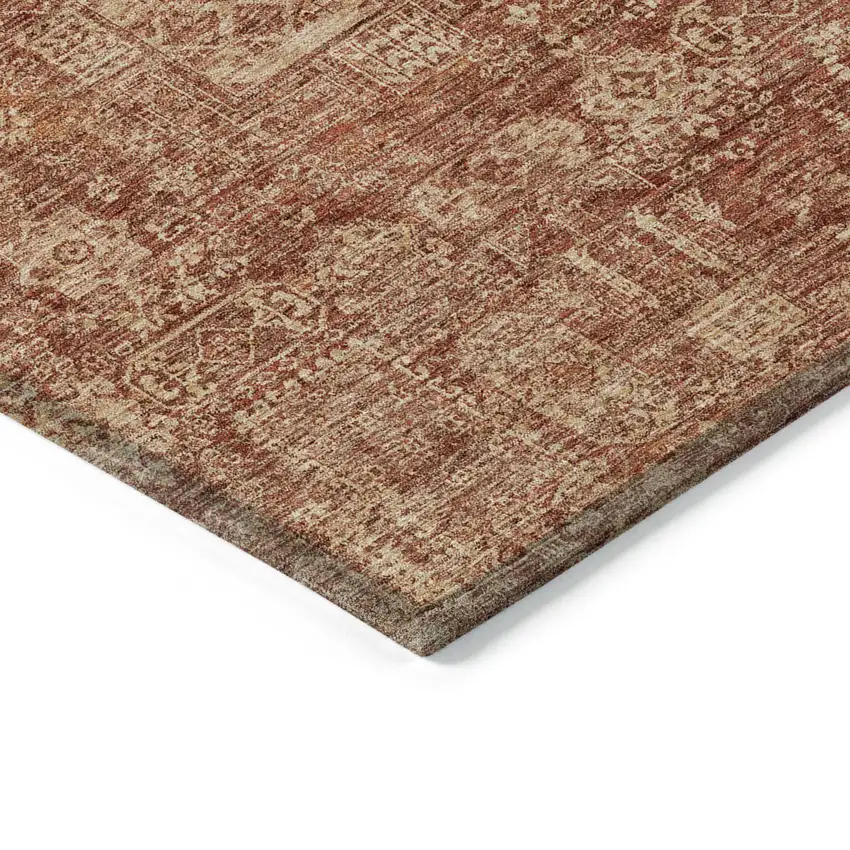 Set an inviting tone in your space with this 5-foot x 8-foot orange copper and terra cotta oriental washable indoor outdoor area rug. This rectangle shaped rug features a oriental design that will work well both indoors or out. A classic shape marries with good looking design for your living room, hall, bedroom, porch, patio, or poolside. Ideal for outdoor spaces or high traffic areas with kids and pets, this rug is made from heavy duty polyester that is stain resistant to help repel water, dirt, and stains. Versatile in use, durable, and easy to maintain, this rug is an ideal solution to add a decorative and inviting touch to your indoor or outdoor space. 60-inch h x 90-inch w x 0.19-inch d.