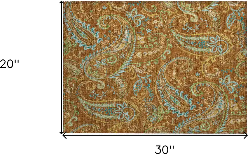 Orange Paisley Washable Non Skid Indoor Outdoor Area Rug
