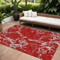 Orange Peach And Brown Abstract Washable Indoor Outdoor Area Rug