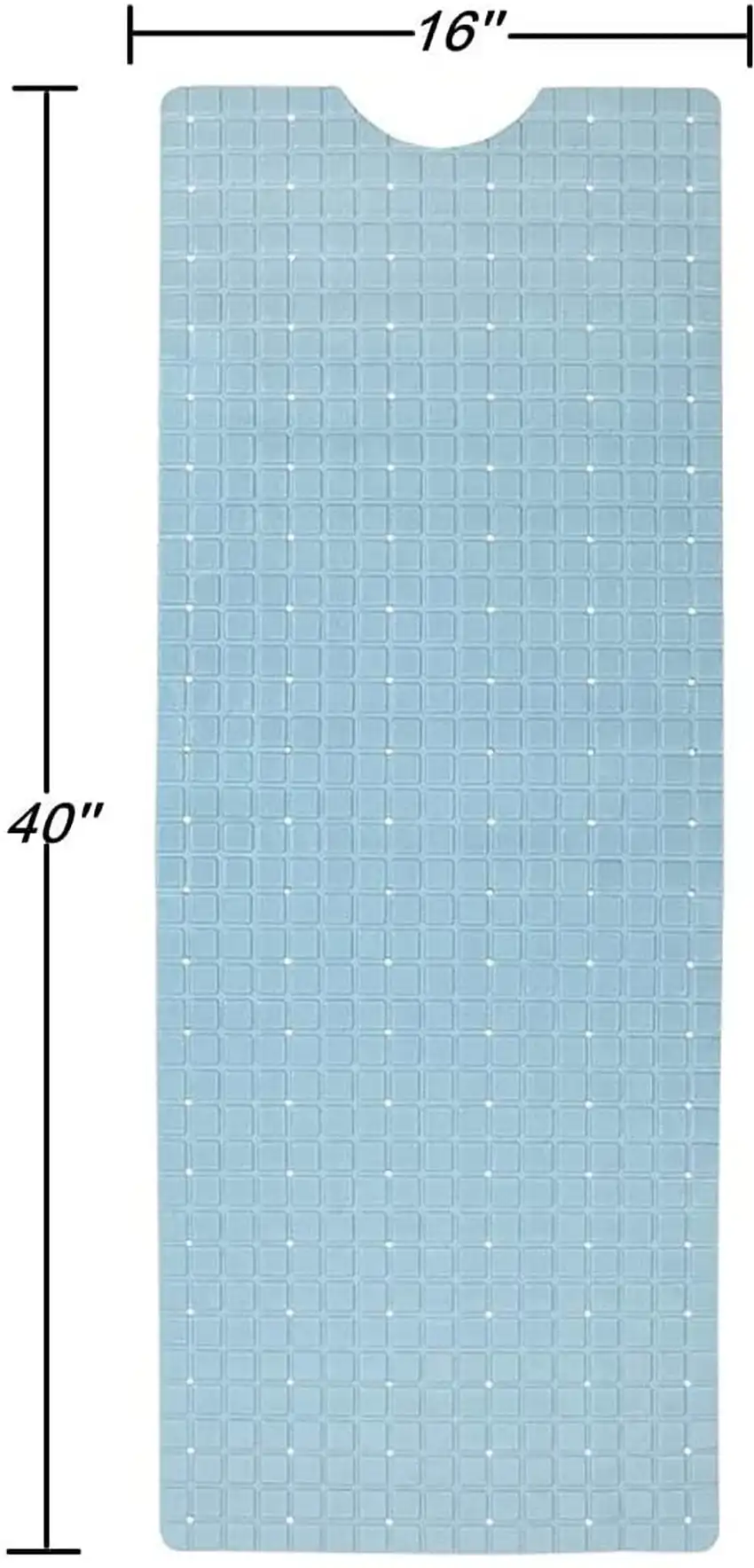 Add comfort and safety to your bath with this good looking and practical Pale Blue Keyboard Tile Bathtub Mat. Designed with many small squares that resemble a keyboard, the soft surface also includes circular holes for drainage. Prevent slipping and sliding in the bath with this sturdy and long lasting mat. There are 200 suction cups underneath the comfortable surface that help keep this mat in place for safer baths and showers. 16" x 40" x .1"