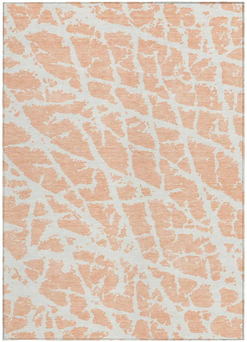 Peach and Ivory Abstract Washable Non Skid Indoor Outdoor Area Rug