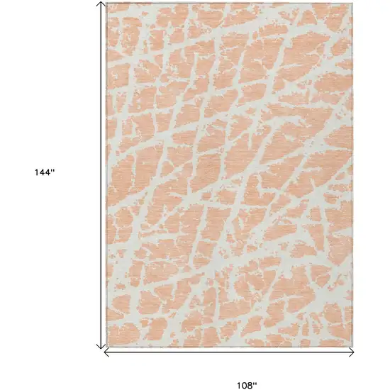 Add some artistry to your room with this 9-foot x 12-foot peach and ivory abstract washable stain resistant non skid indoor outdoor area rug. This rectangle shaped rug features a abstract design in peach and ivory to give it visual interest. A classic shape marries with good looking design for your space ideal for spaces with kids and pets, this rug is stain resistant to help repel stains and spilled liquids. Place this area rug against a hardwood or tile floor and it will enliven your living space with style and sophistication. 108-inch H x 144-inch W x 0.19-inch D