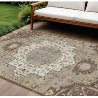 Pewter Brown And Charcoal Geometric Washable Indoor Outdoor Area Rug
