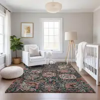 Pewter Gray And Silver Abstract Washable Area Rug With UV Protection