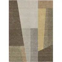 Pewter Ivory And Gold Abstract Washable Indoor Outdoor Area Rug