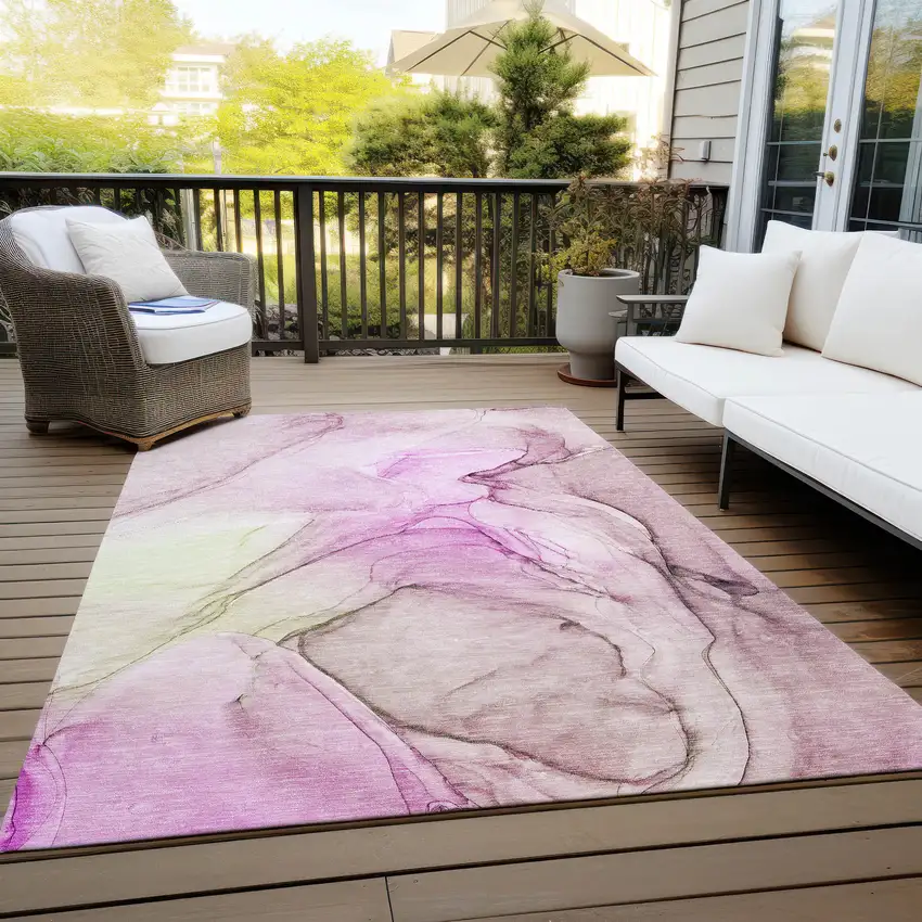 Pink Abstract Washable Non Skid Indoor Outdoor Area Rug