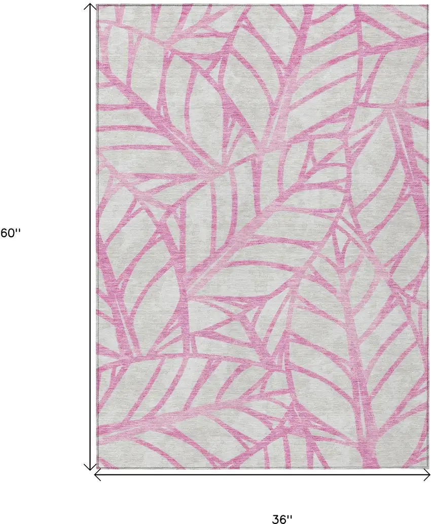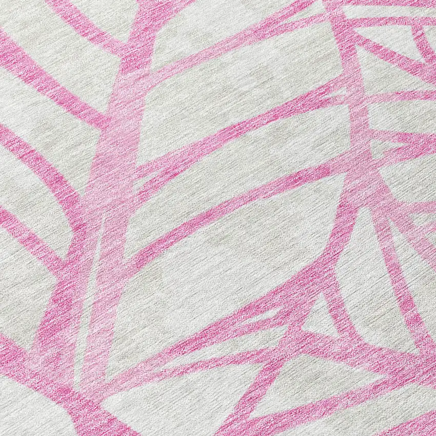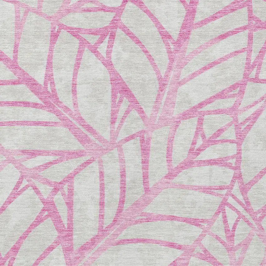 Pink And Beige Floral Washable Indoor Outdoor Area Rug