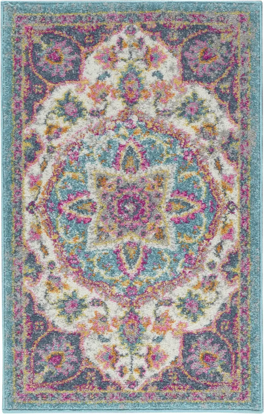 Designed with your convenience in mind, the Pink and Blue Floral Medallion Scatter Rug requires minimal maintenance. Its stain-resistant and fade-resistant properties make it an ideal choice for busy households or areas with high foot traffic. Simply vacuum regularly and spot clean when necessary, and this rug will continue to look fresh and beautiful.