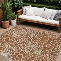 Pink And Brick Red Damask Washable Indoor Outdoor Area Rug