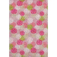 Pink And Gray Striped Washable Area Rug With UV Protection