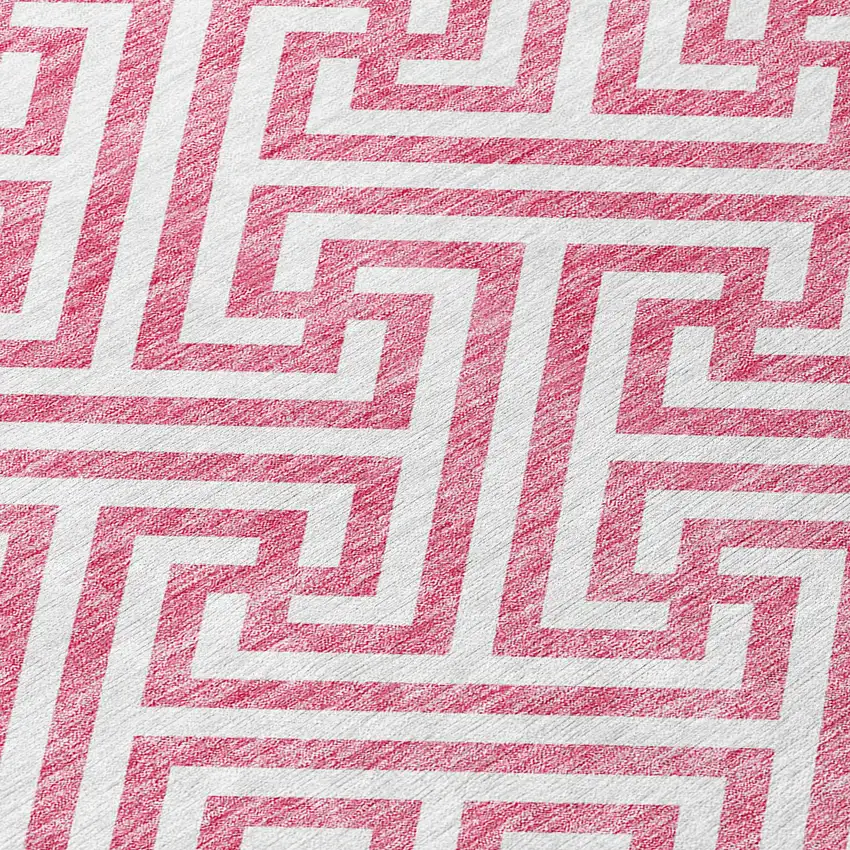 Pink And Ivory Geometric Washable Indoor Outdoor Area Rug