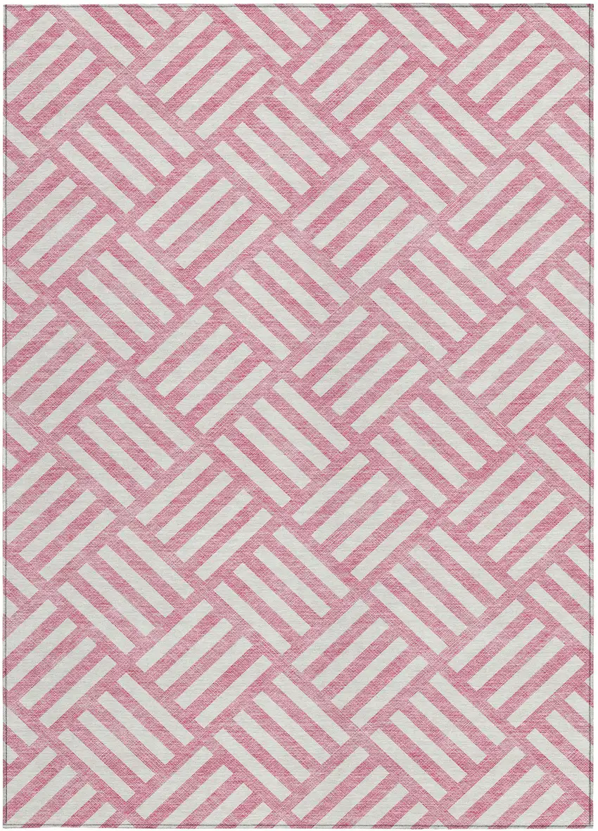 Add some artistry to your room with this 9-foot x 12-foot pink and ivory geometric washable indoor outdoor area rug. This rectangle shaped rug features a geometric design that will work well both indoors or out. A classic shape marries with good looking design for your living room, hall, bedroom, porch, patio, or poolside. Ideal for outdoor spaces or high traffic areas with kids and pets, this rug is made from heavy duty polyester that is stain resistant to help repel water, dirt, and stains. Versatile in use, durable, and easy to maintain, this rug is an ideal solution to add a decorative and inviting touch to your indoor or outdoor space. 108-inch h x 144-inch w x 0.19-inch d.