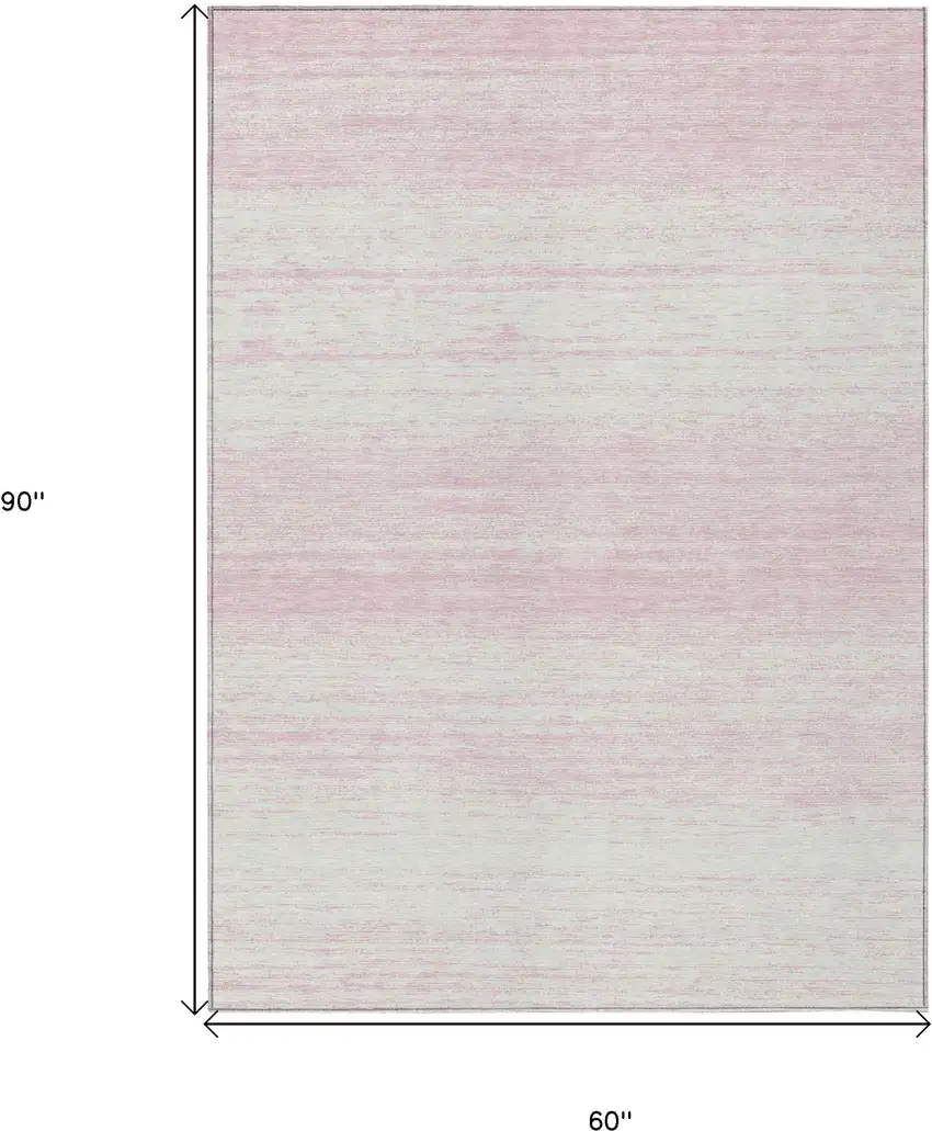 Pink And Ivory Striped Washable Indoor Outdoor Area Rug