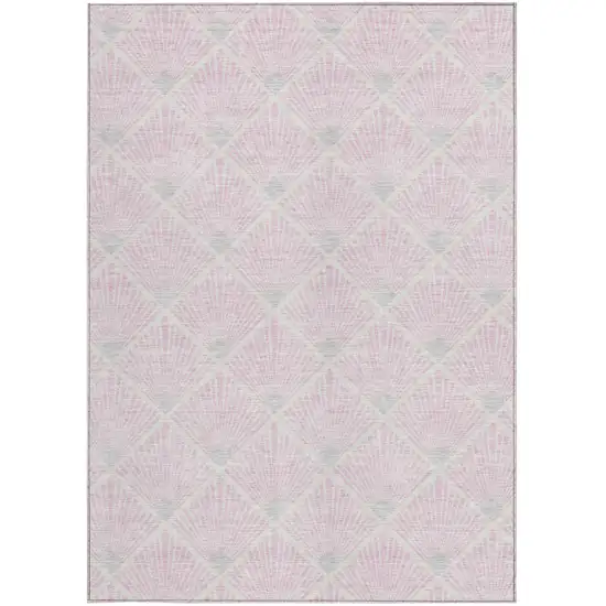 Add great coloration and comfortable texture to your space with this 5-foot x 8-foot pink gray and ivory geometric washable indoor outdoor area rug. This rectangle shaped rug features a geometric design that will work well both indoors or out. A classic shape marries with good looking design for your living room, hall, bedroom, porch, patio, or poolside. Ideal for outdoor spaces or high traffic areas with kids and pets, this rug is made from heavy duty polyester that is stain resistant to help repel water, dirt, and stains. Versatile in use, durable, and easy to maintain, this rug is an ideal solution to add a decorative and inviting touch to your indoor or outdoor space. 60-inch h x 90-inch w x 0.19-inch d.