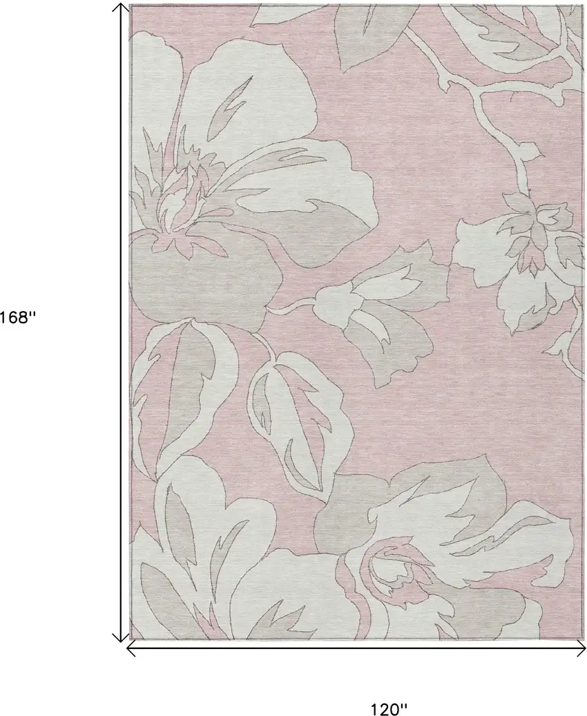 Add great coloration and comfortable texture to your space with this 10-foot x 14-foot pink ivory and beige floral washable indoor outdoor area rug. This rectangle shaped rug features a floral design that will work well both indoors or out. A classic shape marries with good looking design for your living room, hall, bedroom, porch, patio, or poolside. Ideal for outdoor spaces or high traffic areas with kids and pets, this rug is made from heavy duty polyester that is stain resistant to help repel water, dirt, and stains. Versatile in use, durable, and easy to maintain, this rug is an ideal solution to add a decorative and inviting touch to your indoor or outdoor space. 120-inch h x 168-inch w x 0.19-inch d.