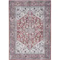Pink Lavender And Ivory Geometric Washable Area Rug With UV Protection