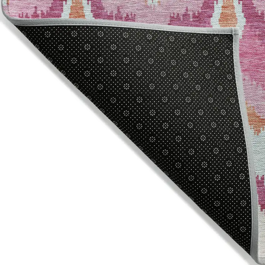 Set an inviting tone in your space with this 8-foot x 10-foot pink mauve and orange ikat washable indoor outdoor area rug. This rectangle shaped rug features a ikat design that will work well both indoors or out. A classic shape marries with good looking design for your living room, hall, bedroom, porch, patio, or poolside. Ideal for outdoor spaces or high traffic areas with kids and pets, this rug is made from heavy duty polyester that is stain resistant to help repel water, dirt, and stains. Makes a great way to dress up your patio, porch, or poolside, but also works well as a durable and easy to maintain option in the kitchen, family room, or mudroom. 96-inch h x 120-inch w x 0.19-inch d.