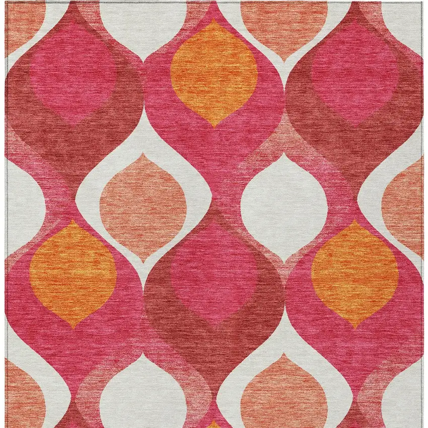 Pink Mauve And Orange Ogee Washable Indoor Outdoor Area Rug