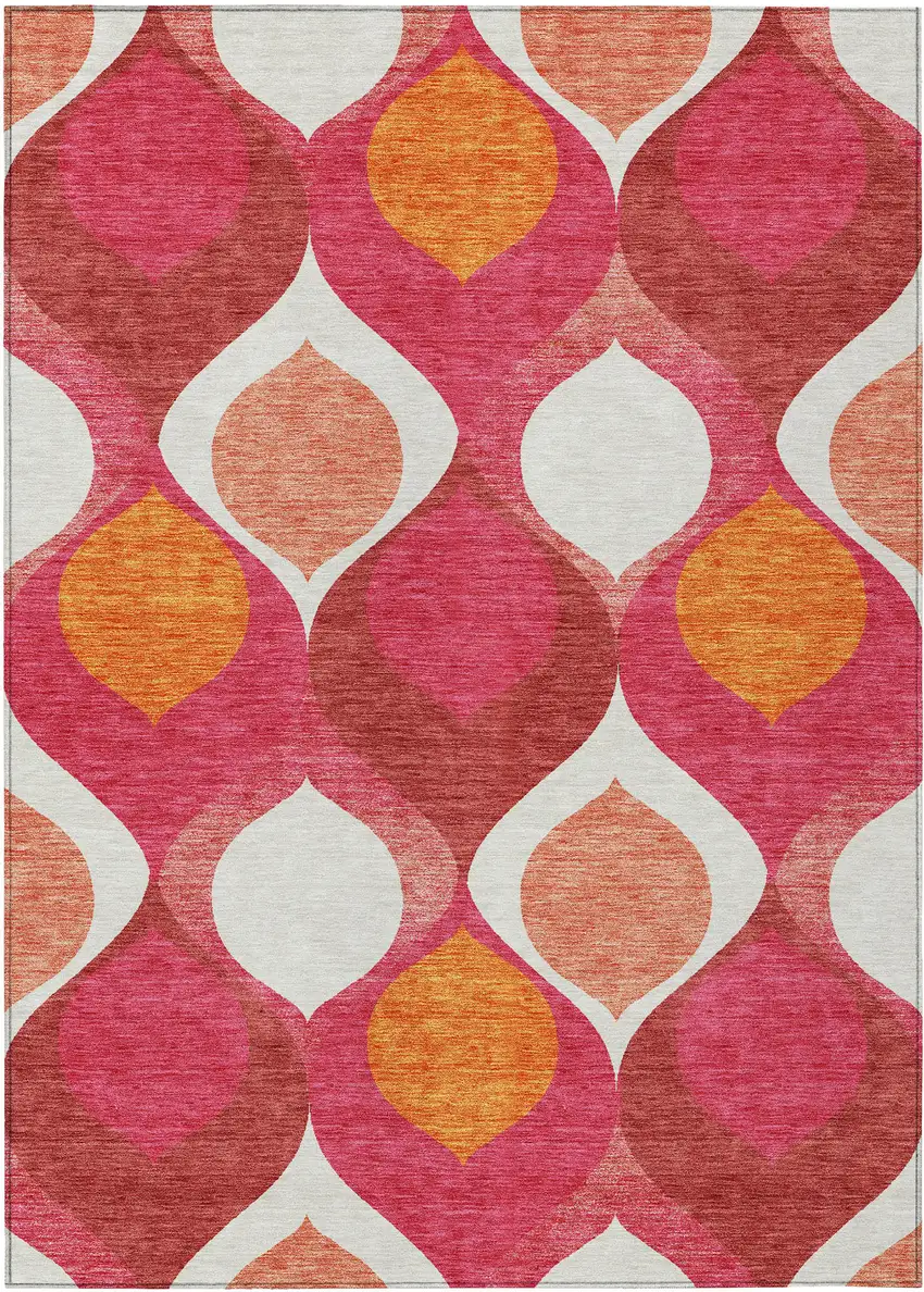 Set an inviting tone in your space with this 10-foot x 14-foot pink mauve and orange ogee washable indoor outdoor area rug. This rectangle shaped rug features a ogee design that will work well both indoors or out. A classic shape marries with good looking design for your living room, hall, bedroom, porch, patio, or poolside. Ideal for outdoor spaces or high traffic areas with kids and pets, this rug is made from heavy duty polyester that is stain resistant to help repel water, dirt, and stains. Makes a great way to dress up your patio, porch, or poolside, but also works well as a durable and easy to maintain option in the kitchen, family room, or mudroom. 120-inch h x 168-inch w x 0.19-inch d.