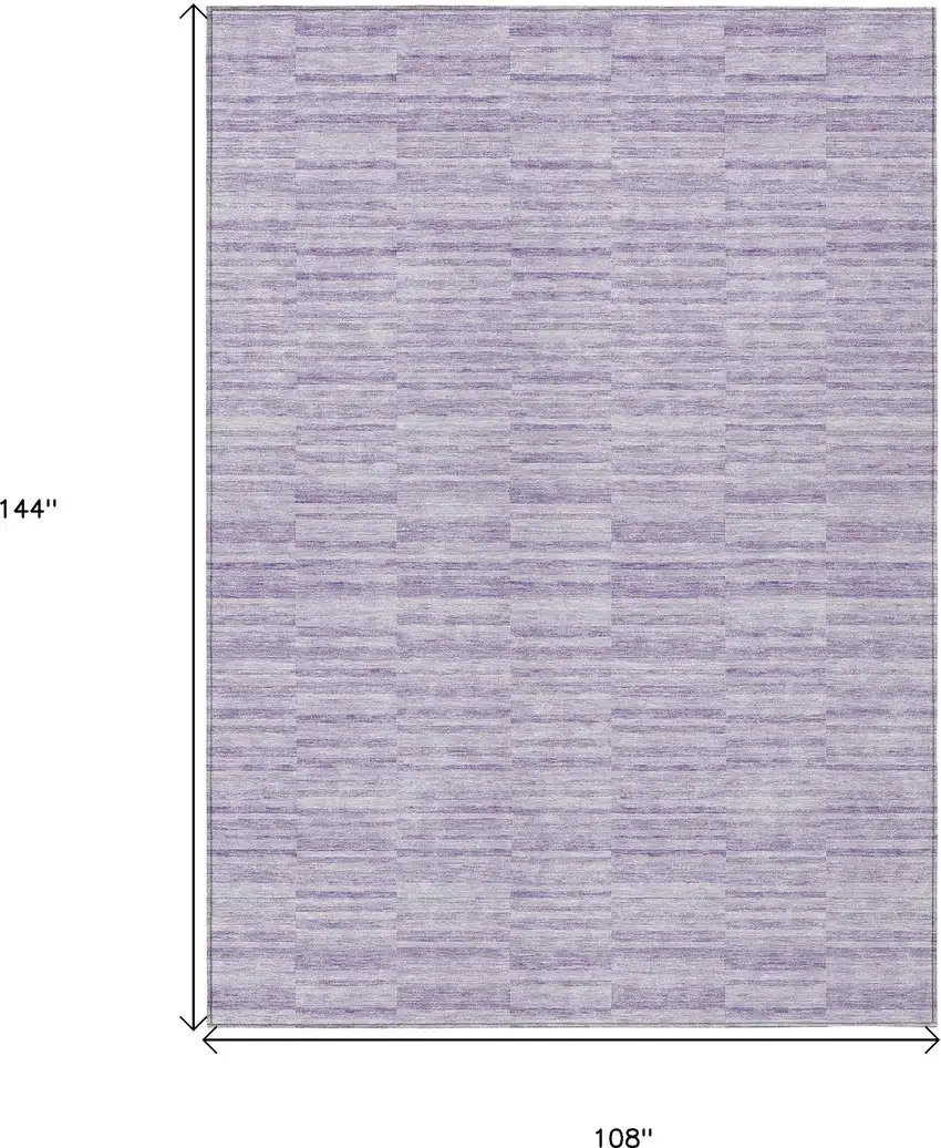 Set an inviting tone in your space with this 9-foot x 12-foot plum and purple striped washable indoor outdoor area rug. This rectangle shaped rug features a striped design that will work well both indoors or out. A classic shape marries with good looking design for your living room, hall, bedroom, porch, patio, or poolside. Ideal for outdoor spaces or high traffic areas with kids and pets, this rug is made from heavy duty polyester that is stain resistant to help repel water, dirt, and stains. Makes a great way to dress up your patio, porch, or poolside, but also works well as a durable and easy to maintain option in the kitchen, family room, or mudroom. 108-inch h x 144-inch w x 0.19-inch d.