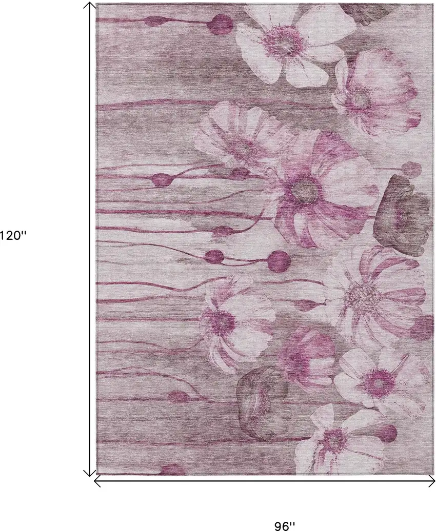 Add some artistry to your room with this 8-foot x 10-foot plum mauve and pink floral washable indoor outdoor area rug. This rectangle shaped rug features a floral design that will work well both indoors or out. A classic shape marries with good looking design for your living room, hall, bedroom, porch, patio, or poolside. Ideal for outdoor spaces or high traffic areas with kids and pets, this rug is made from heavy duty polyester that is stain resistant to help repel water, dirt, and stains. Makes a great way to dress up your patio, porch, or poolside, but also works well as a durable and easy to maintain option in the kitchen, family room, or mudroom. 96-inch h x 120-inch w x 0.19-inch d.