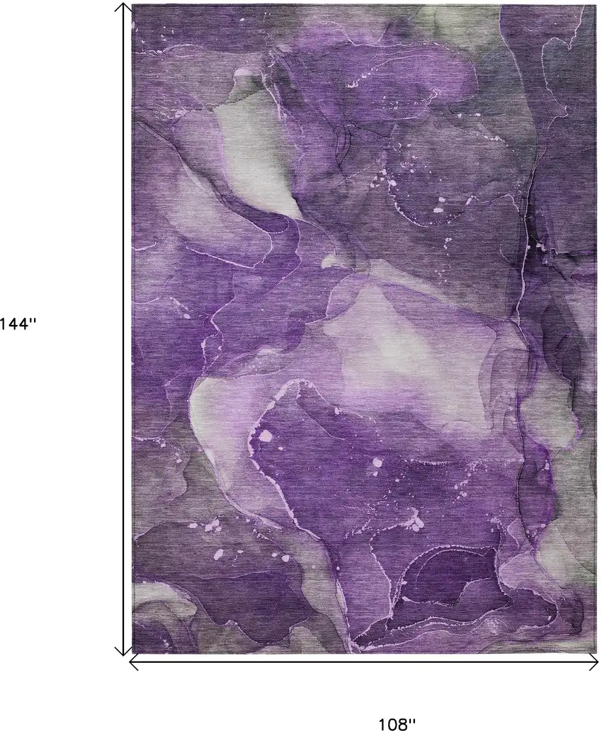 This 9-foot x 12-foot purple abstract washable stain resistant non skid indoor outdoor area rug, is a great way to add warmth to a room. This rectangle shaped rug features a abstract design in purple to give it visual interest. A classic shape marries with good looking design for your space ideal for spaces with kids and pets, this rug is stain resistant to help repel stains and spilled liquids. Area rugs help to give warmth and sense of home to your space. 108-inch H x 144-inch W x 0.19-inch D