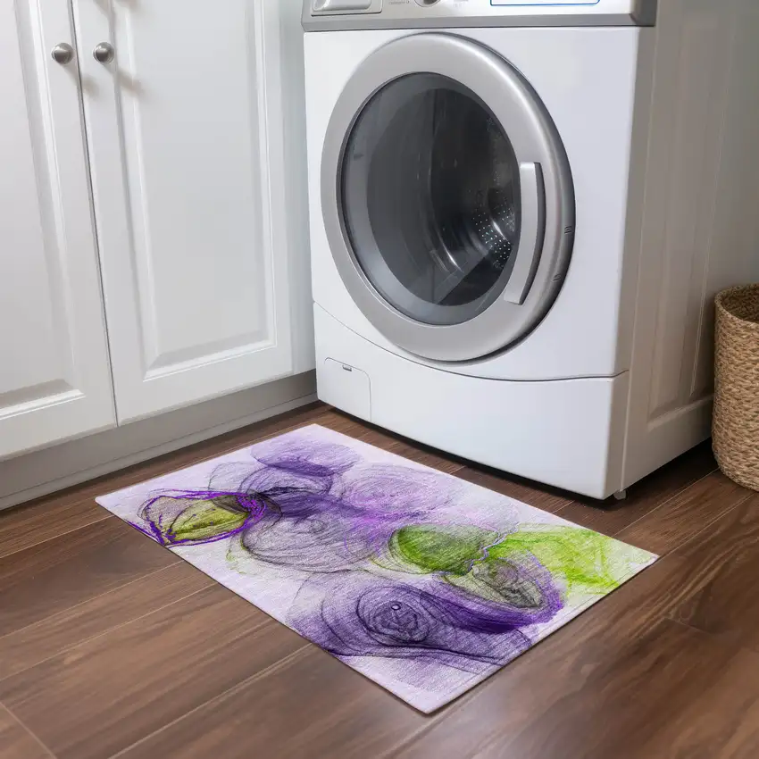 Purple Abstract Washable Non Skid Indoor Outdoor Area Rug