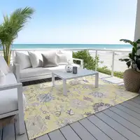 Set an inviting tone in your space with this 9-foot x 12-foot purple and green floral washable stain resistant non skid indoor outdoor area rug. This rectangle shaped rug features a floral design in purple and green to give it visual interest. A classic shape marries with good looking design for your space ideal for spaces with kids and pets, this rug is stain resistant to help repel stains and spilled liquids. Area rugs help to give warmth and sense of home to your space. 108-inch H x 144-inch W x 0.19-inch D