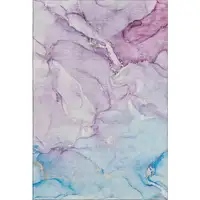 Purple And Ivory Abstract Washable Area Rug With UV Protection