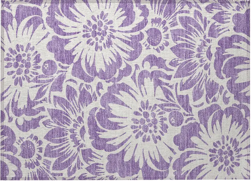 Purple and Ivory Floral Washable Non Skid Indoor Outdoor Area Rug