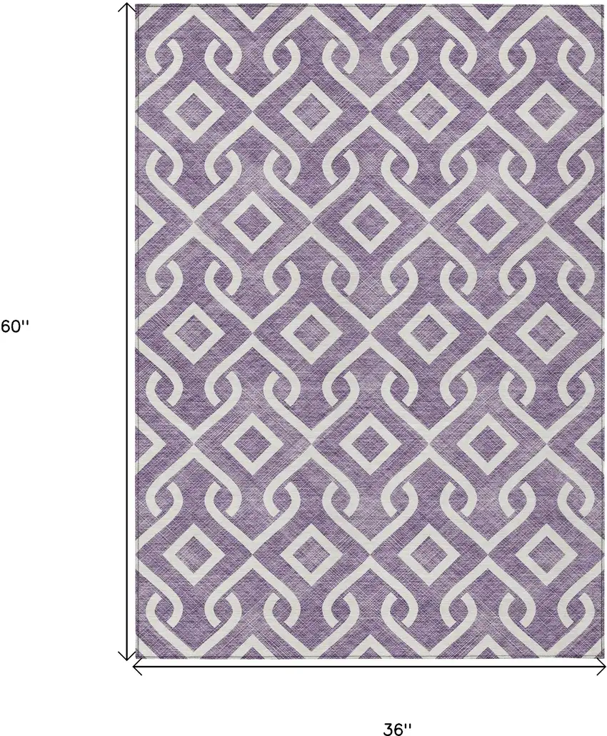 Purple And Ivory Geometric Washable Indoor Outdoor Area Rug