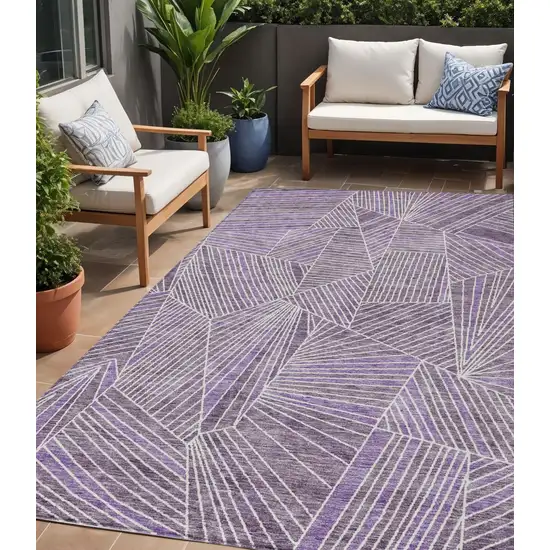 Purple And Ivory Geometric Washable Indoor Outdoor Area Rug