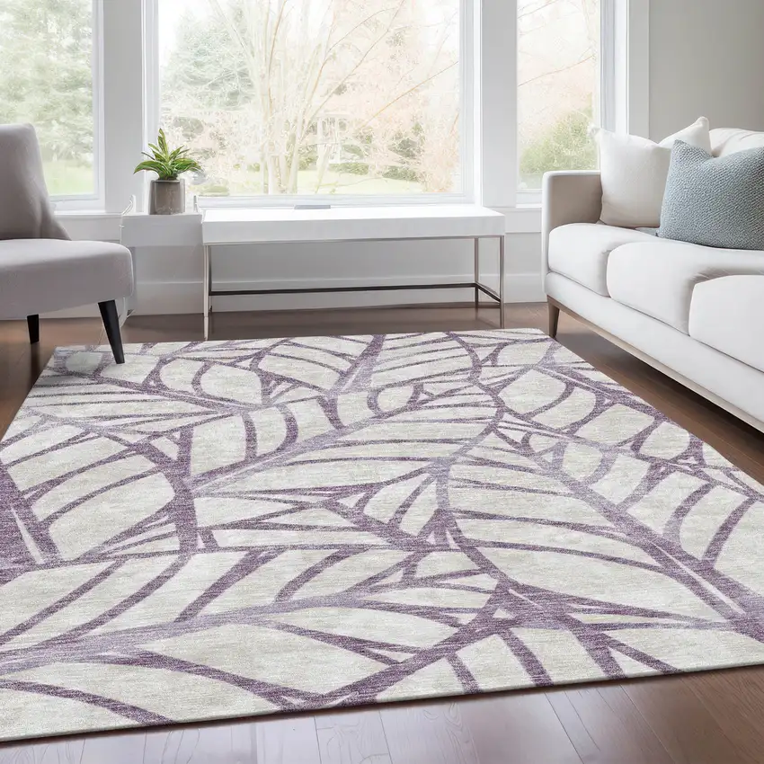 Purple Lavender And Beige Floral Washable Indoor Outdoor Area Rug