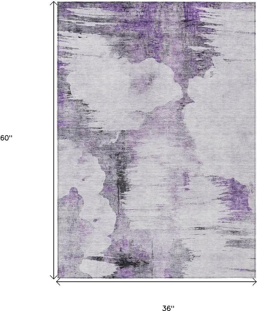 Purple Lavender And Gray Abstract Washable Indoor Outdoor Area Rug