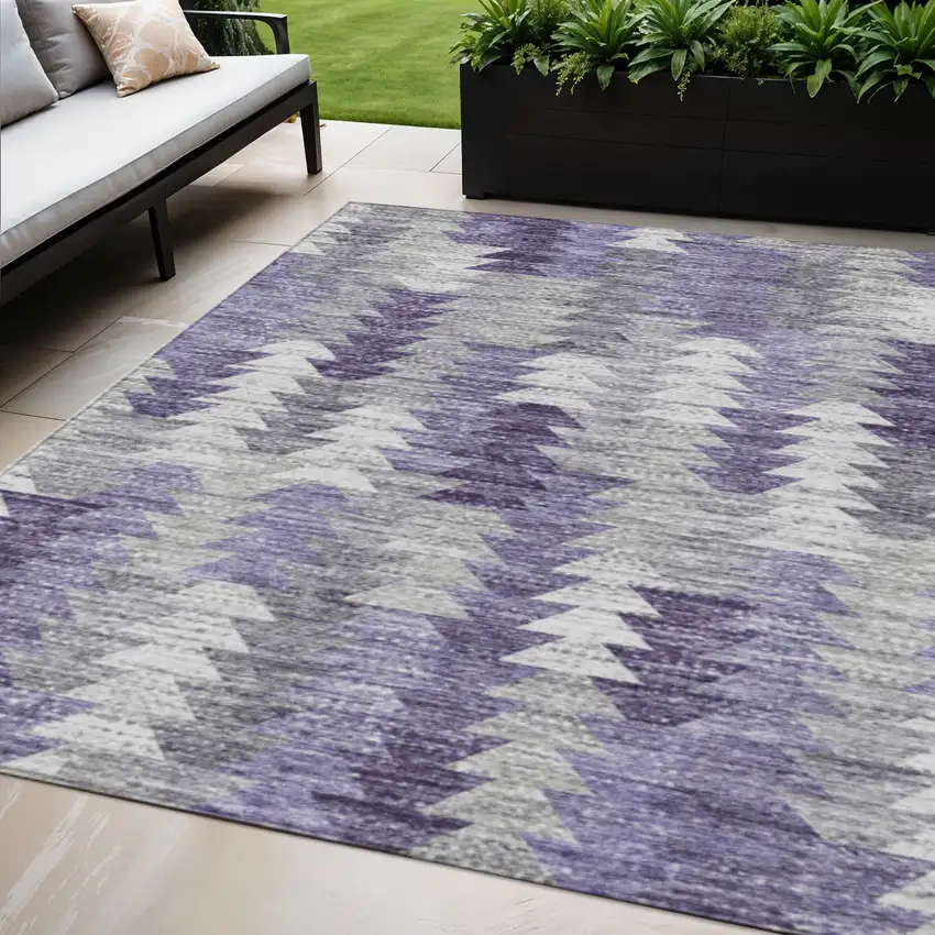 Add great coloration and comfortable texture to your space with this 5-foot x 8-foot purple lavender and gray geometric washable indoor outdoor area rug. This rectangle shaped rug features a geometric design that will work well both indoors or out. A classic shape marries with good looking design for your living room, hall, bedroom, porch, patio, or poolside. Ideal for outdoor spaces or high traffic areas with kids and pets, this rug is made from heavy duty polyester that is stain resistant to help repel water, dirt, and stains. Versatile in use, durable, and easy to maintain, this rug is an ideal solution to add a decorative and inviting touch to your indoor or outdoor space. 60-inch h x 90-inch w x 0.19-inch d.