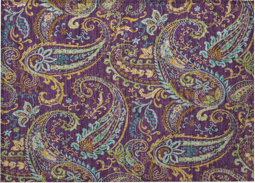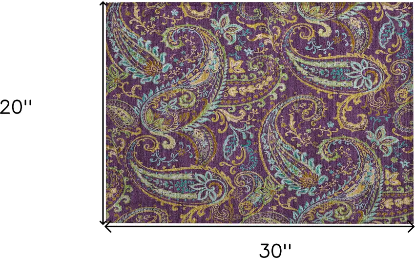 Purple Paisley Washable Non Skid Indoor Outdoor Area Rug