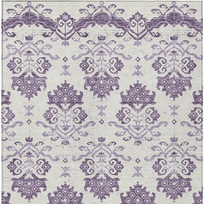 Purple Silver And Lilac Oriental Washable Indoor Outdoor Area Rug