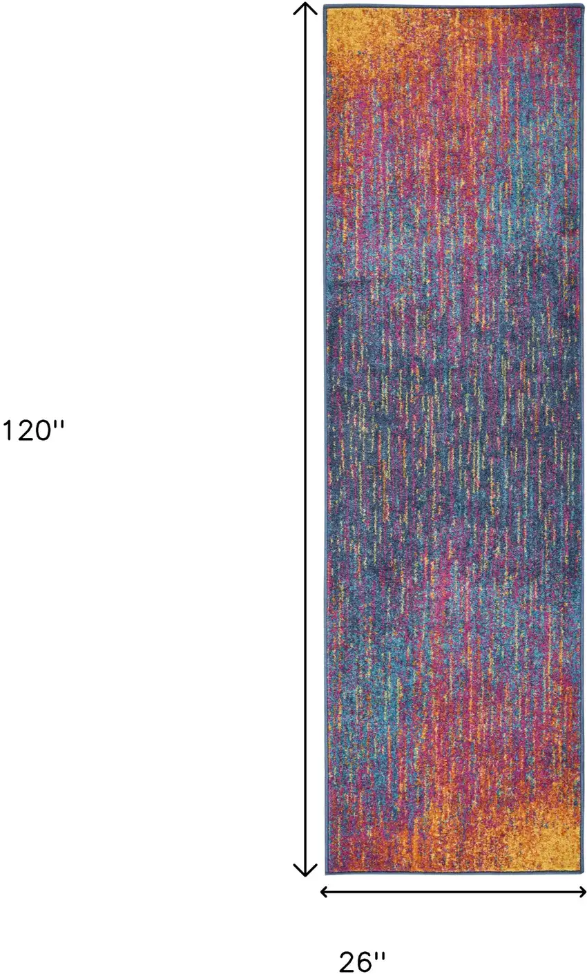 Step up your home styling game with this unique, vibrant runner rug. Its bold, abstract striations can immediately draw the eye and enliven the space.