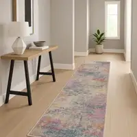 Infuse a dose of quirky, artistic touch to your décor with this runner rug featuring splashes of colorful abstract striations.