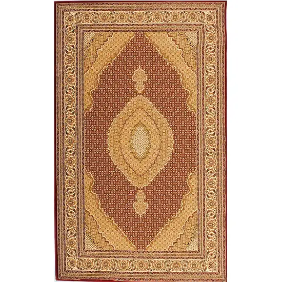 The striking red and beige color scheme is elegantly accented by the intricate medallion pattern, creating a mesmerizing visual illusion. This rug increases the aesthetic appeal of your living space, without overpowering the existing decor.