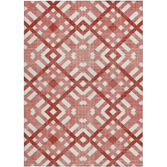 Red And Ivory Geometric Washable Indoor Outdoor Area Rug