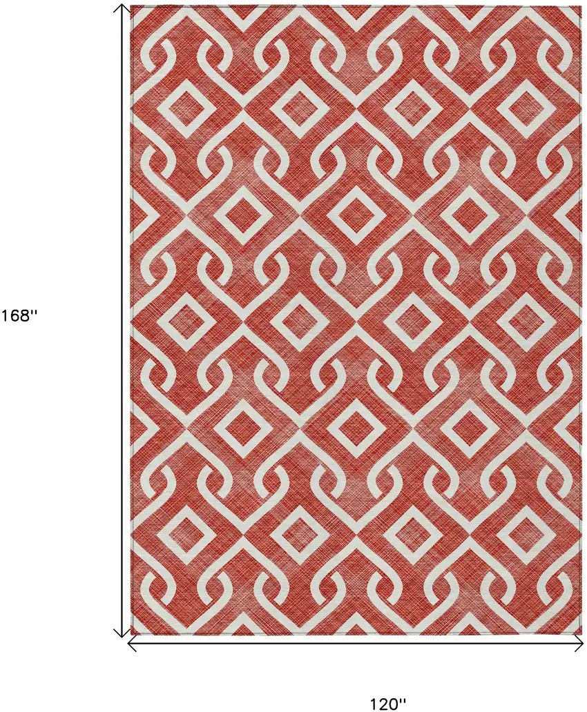 Red And Ivory Geometric Washable Indoor Outdoor Area Rug